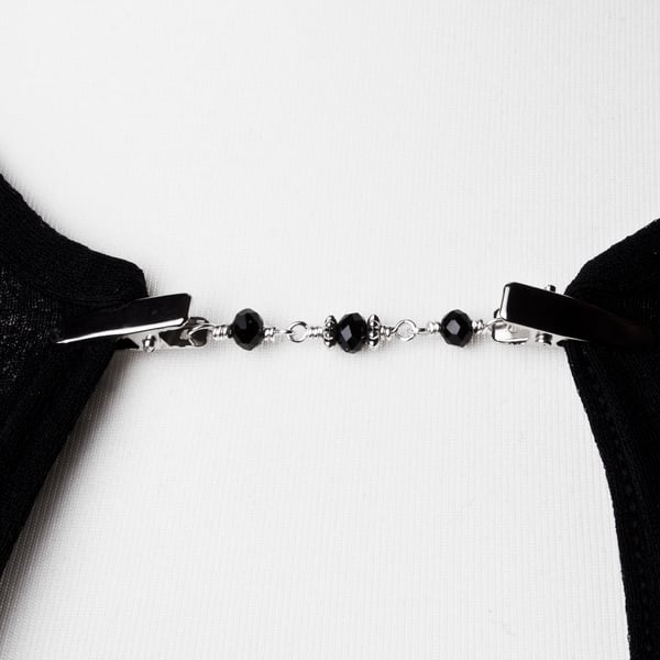 Black bead sweater clip beaded cardigan guard. Folksy Very well made.