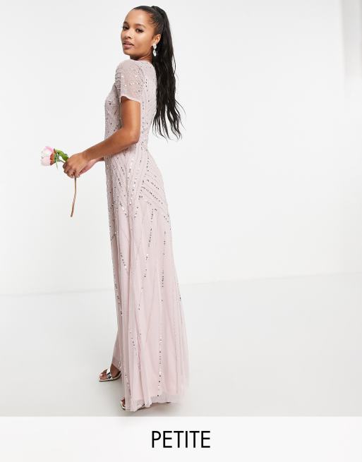 Frock and Frill Petite Bridesmaid Kurzarmliges Brautjungfern Maxikleid in staubigem Mauve mit Verzierungen Very well made.