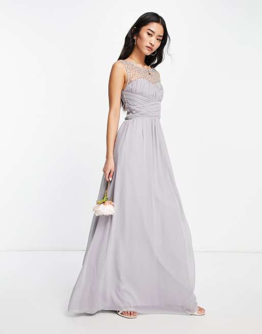 Little Mistress Bridesmaids tie waist maxi dress in grey Very well made.